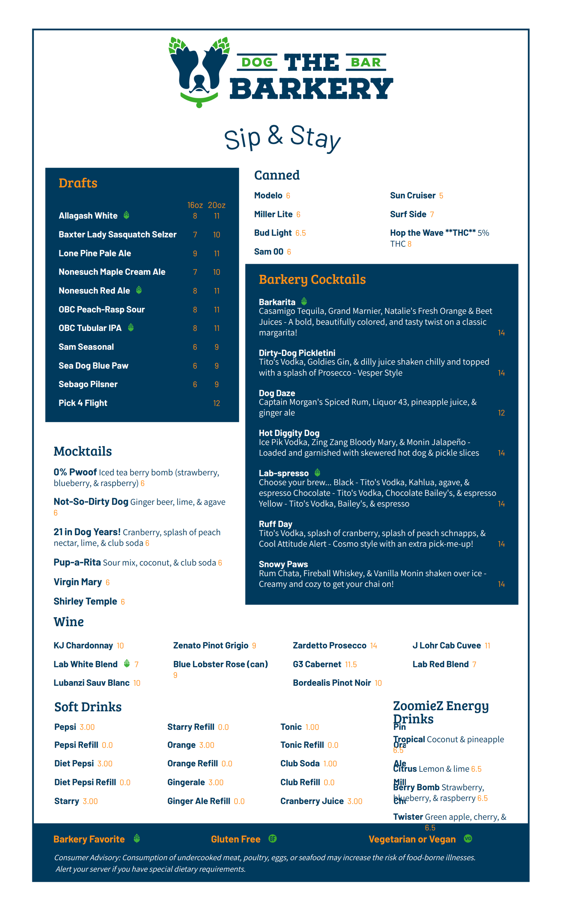 - Craft cocktails and drinks